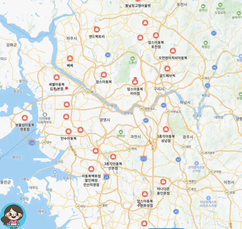 창고형 아동복은 네이버 지도에 '창고형 아동복'이라고 치면 지역별로 몇개가 떠요.