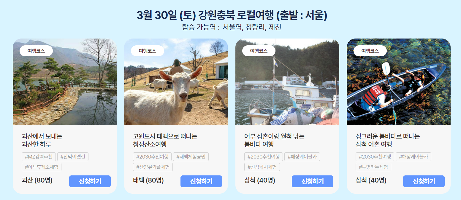 2. 3월 30일 토요일 강원충북 로컬여행 - 괴산, 태백, 삼척(2코스)