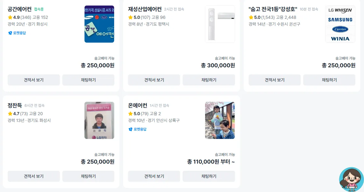 원래 LG에 접수하기 전에 숨고에서 한번 견적 받아봤었는데요.